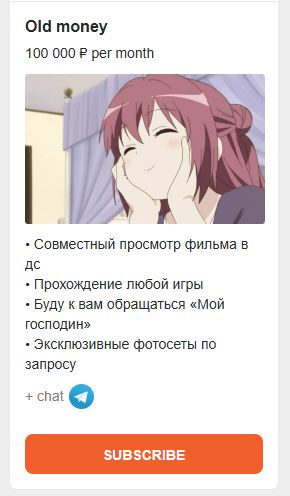>>23970882 Обсуждали уже, анон предлагал ей круглую сумму значительно превышающую самую дорогую подписку, но она слилась, видимо ебырь не разрешает. Так что пока в отношениях, "сисиков и писиков" - не будет с 99.9% вероятностью. Ну либо сразу нужно с пол мульта торговаться, да и то врядли, как и сказал - не разрешают