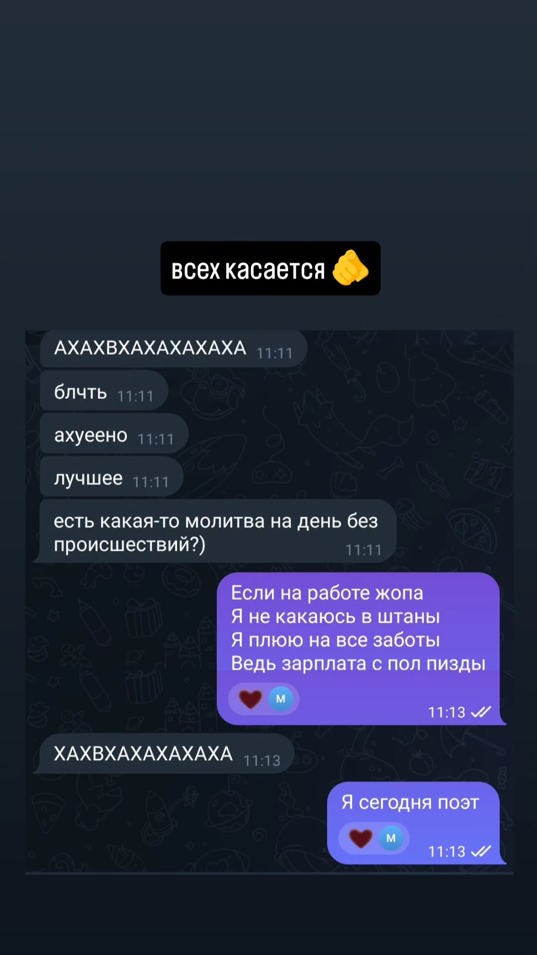 >v_tvoey_zone_yuta: меня либо все хотят, либо у меня паранойя ну точно не второе >chypanyazxc: малыш, я добьюсь бархатной кожи лица, чтобы тебе с него не захотелось никогда вставать