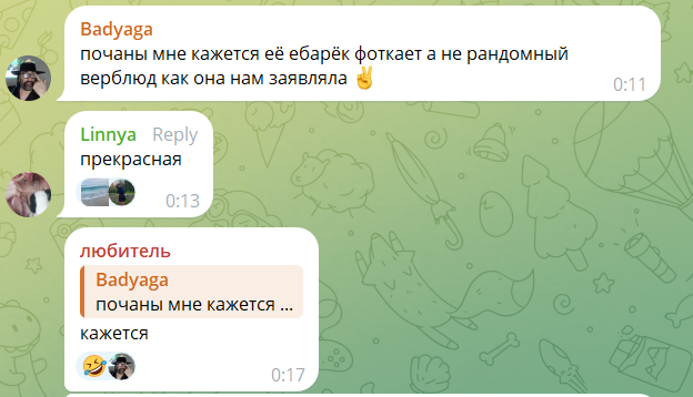 >>23775180 Во первых она пиздит на счет этого Когда её спрашивают есть ли парень она просто в наглую пиздит, что нет, она сейчас одна, и в этот момент там кашляет ебырь в комнате Такое наблюдать это уже куколдство какое то Кому норм то пусть смотрят пожалста.