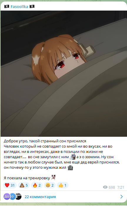 Вчера рано спать пошла в 21:00. Сегодня перенесла инту из-за того что спала днем. Спустя долгое время у нее в чате появляется номанз. Говорит что интерес к играм пропал. Думайте думайте!