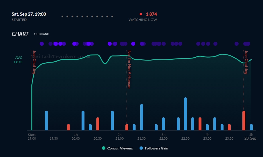 >>25286651 Не, сегодня реально крутит кто-то. Не думаю что она, но у неё вообще весь стрим 1900 онлайна без просадок и это на игре. Это прям хуйня, зайди на её любой же стрим такого не бывает.