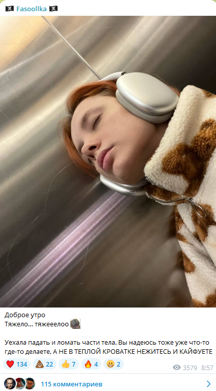 Да да на каток она идет вон как в темпе оффнула. Говорила что ей выезжать надо чтоб успеть в 19:30 в итоге оффнула в 18:10. Был еще целый час могла спокойно видосы посмотреть что и было изначально в планах. Но походу так торопится явно не на каток что даже еще час не в силах была просидеть. Это кста даже не тренировка она без тренера сегодня типа просто покататься. И как удобно она сегодня в первые проспала нарушив режим.