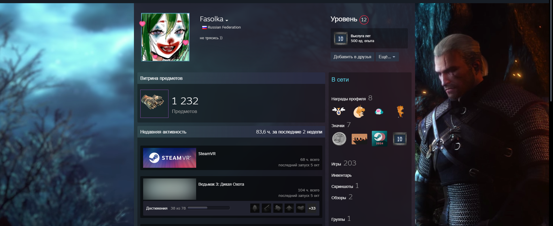 >>25340309 То что это странно)) Фалкон заходит в ведьмака, проводит в нем тридцать минут, выходит и стим как был онлайн так и остался пока она не пришла и не выключила вместе с дискордом)) А учитывая что если на твоем акаунте с другого пк запустить игру, то тебя выбивает из него)) Но перезахода не было!