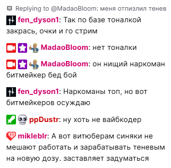 Хорошо, что есть стримеры, которые аккумулируют вокруг себя таких индивидов, позволяют трахать свою ногу за донатики на бесконечных ауках.