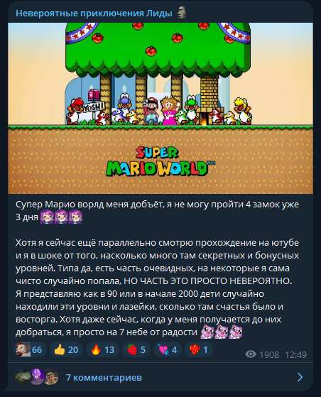 т.е это в каком таком детстве в 2010 - 2020 г. у неё могла быть snes ? хотя наверняка можно было раздобыть, но я сомневаюсь что в 2005 её братишка или она сильно соображали про ретро культуру, чтобы осмысленно выклянчить snes...