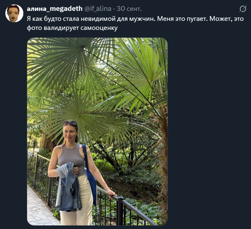 Вот тут интересно как бы мог заинтересовать её озабоченый донди фанат выдав себя за тот типаж которой этой девушки нравиться (видимо спортивный успешный мужчина, планирующий отпуск в разных экзотичных странах)