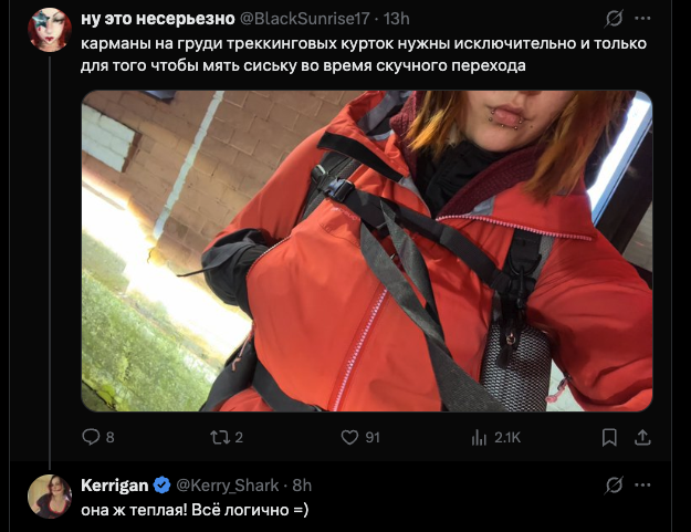 Черваны, сейчас почитал бусти бабули Керриган и вдруг словил себя на мысли, что это могла бы написать моя тян. И чёт такую измену словил, что на самом деле краш-лаваш из постов это я. Пошёл в зеркало посмотрелся, фотки с тяночкой тоже поглядел, вроде спокойнее стало.