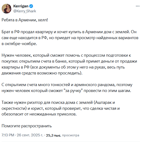 >>25335415 Ой, дурак... Сдаётся мне, что братик продаст квартиру в Россиюшке, а вот в Армении усадьбу с участком не приобретёт, а просто его на деньги разведут.