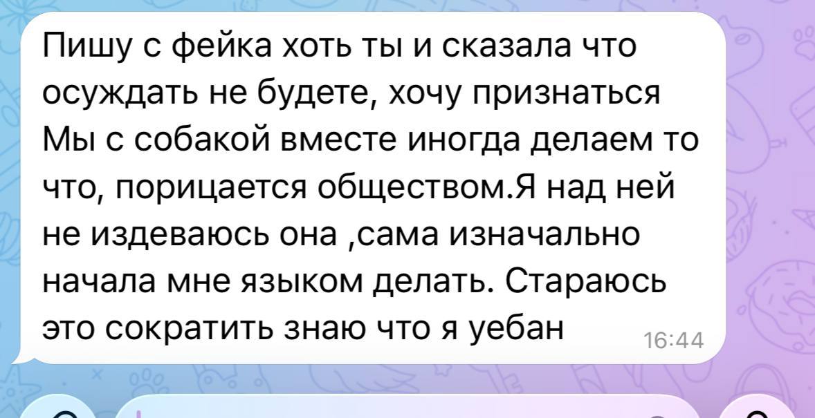 >>25400732 Ну, если хочешь знать обстановку, то в основном в Телеге сейчас публикуют вот такие дущещипательные истории от мочехлебов, которые Брухля активно комментирует. Ну и кто сомневался, что все мочеглоты - это перверты-собакоебы? Кто ещё может симпокалить Брухле?