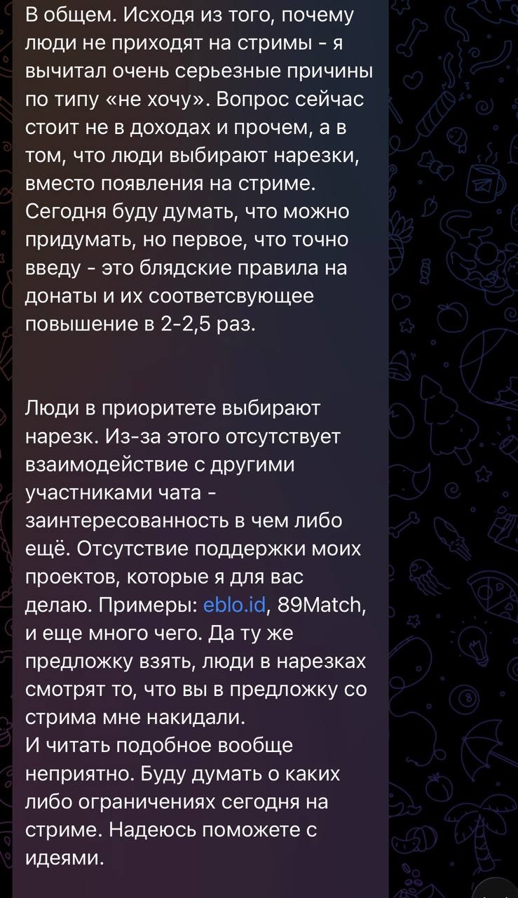 Но да, те жирные времена давно прошли... Теперь большинство всё про него поняли и впереди у него только нищета и стримы на 10 человек (для СВОих) Все жду, когда он начнет на стримах плакать как Владос Савельев, вот это будет каллтент)