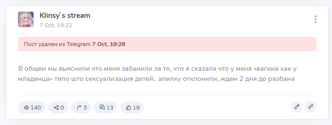 Хотя этот плещивец ркн номерок сделал, чего клялся никогда не делать, соответственно сейчас стату себе крутит, подготавливает почву для рекламы, а тут без ботов никак видимо