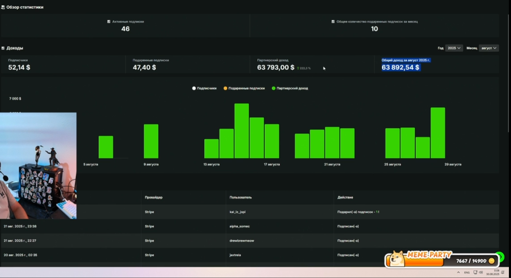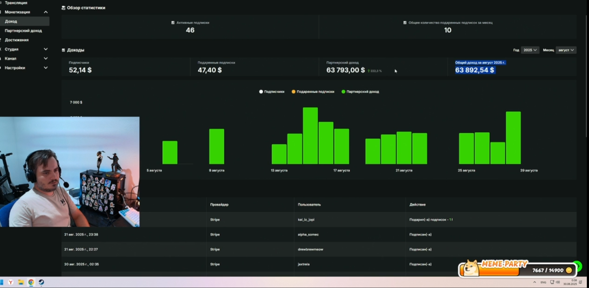 50-70к доход с ксипа kick 300к казик фикса (это по самым скромным меркам, в реале там больше) 20к реклама на различных каналах (телега+хайлайт канал) 10к-15к с донатов + мемов на сдачу
