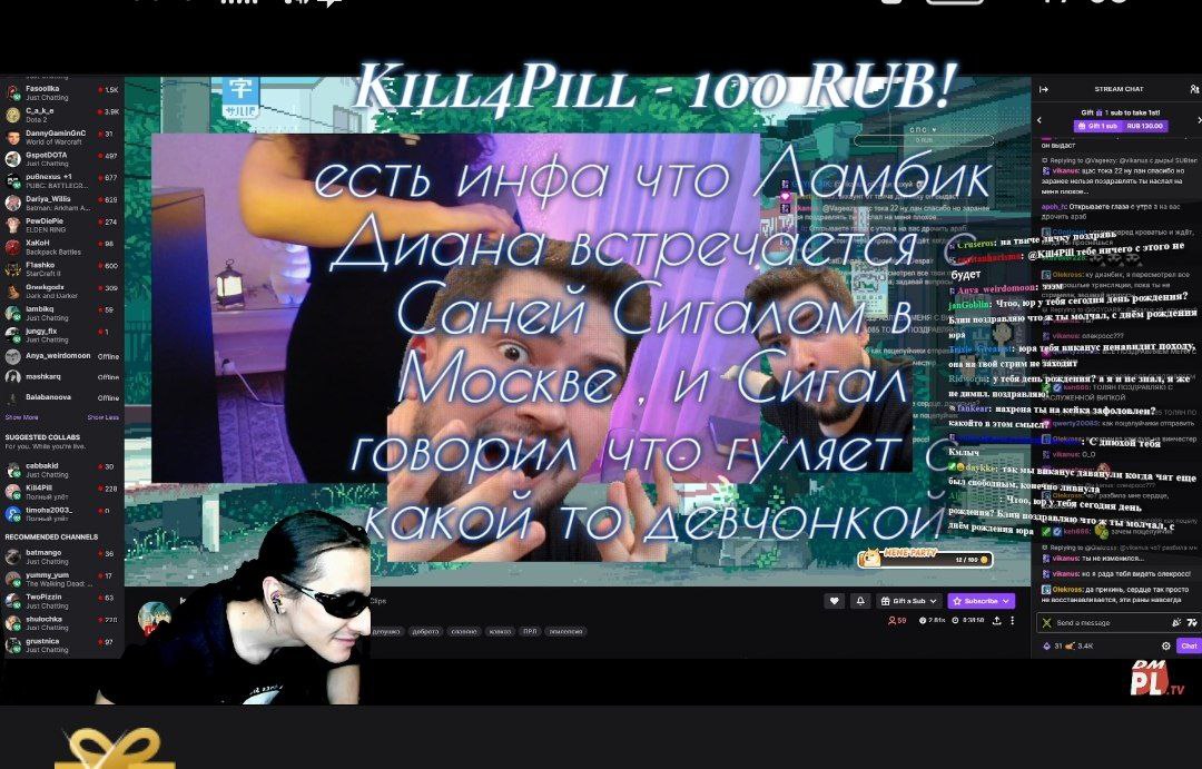 Ламбик пока жила в Москве, ублажала Сашу Висяка судя по тому как он радостно реагирует на ее появление в чате и уделяет столько внимания на стриме. Очередной удар в пузо бедному Аруту