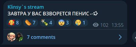 Илья, это просто никуда не годиться... Банда оголтелых нациков в комментах и это в стране победившей фашизм... СРОЧНО отключить комменты и смайлы, саб мод и донат от 50 трл рублей, никаких мемом и на покер ивент Вудуша в назидание!