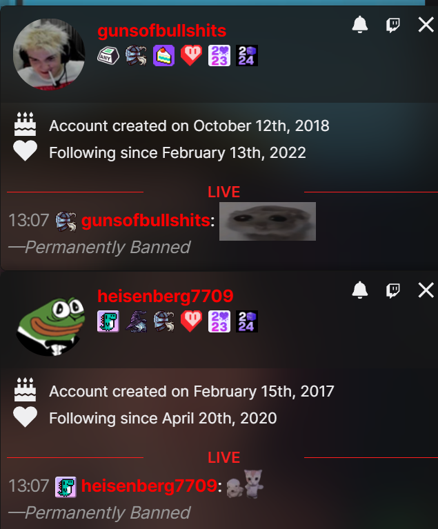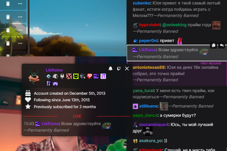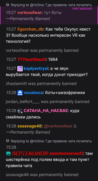 есть у кого проблемы с теневыми банами? в частности - когда пишешь в чат, а сообщения никто не видит? я вот думаю - это меня за терроризм/экстремизм по айпи заблочили или сейчас твич такие массовые зачистки ведёт? или может из-за VPN, антиРКН, днс или ещё чего?