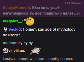 >>25382554 Просто сидим ржем с медовыми над спамерами xdd которых забанили и они теперь плачут думают что оскорблениями стримера в треде что то изменят