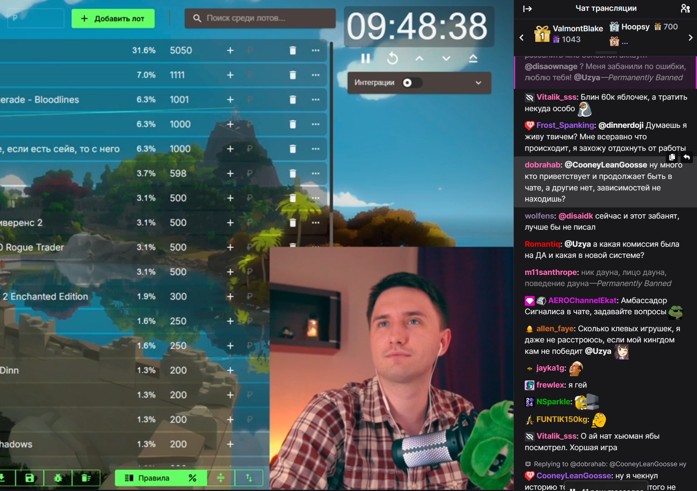 При этом на самом деле его смотрят 50 ридонли человек, и 2000 ботов. На ауках донатит жена, они теряют 15% коммисиями, но реклама это покрывает.