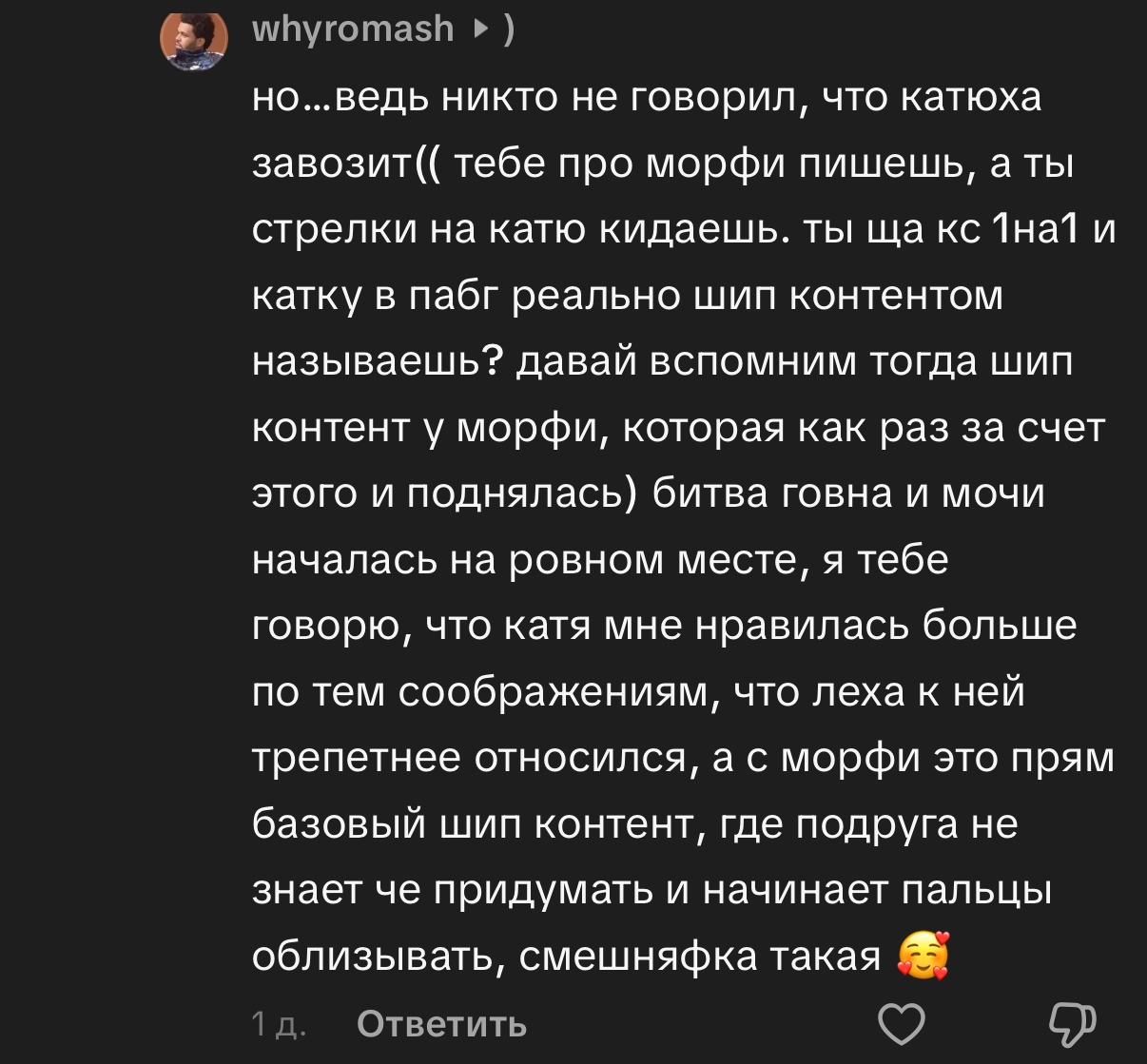 Ребят, а если Лера Морфи сегодня на стриме прыгала в какой-то игре из тиктока с друзьями Лехи она шлюха что-ли? Я просто читаю тут вас и удивляюсь немного