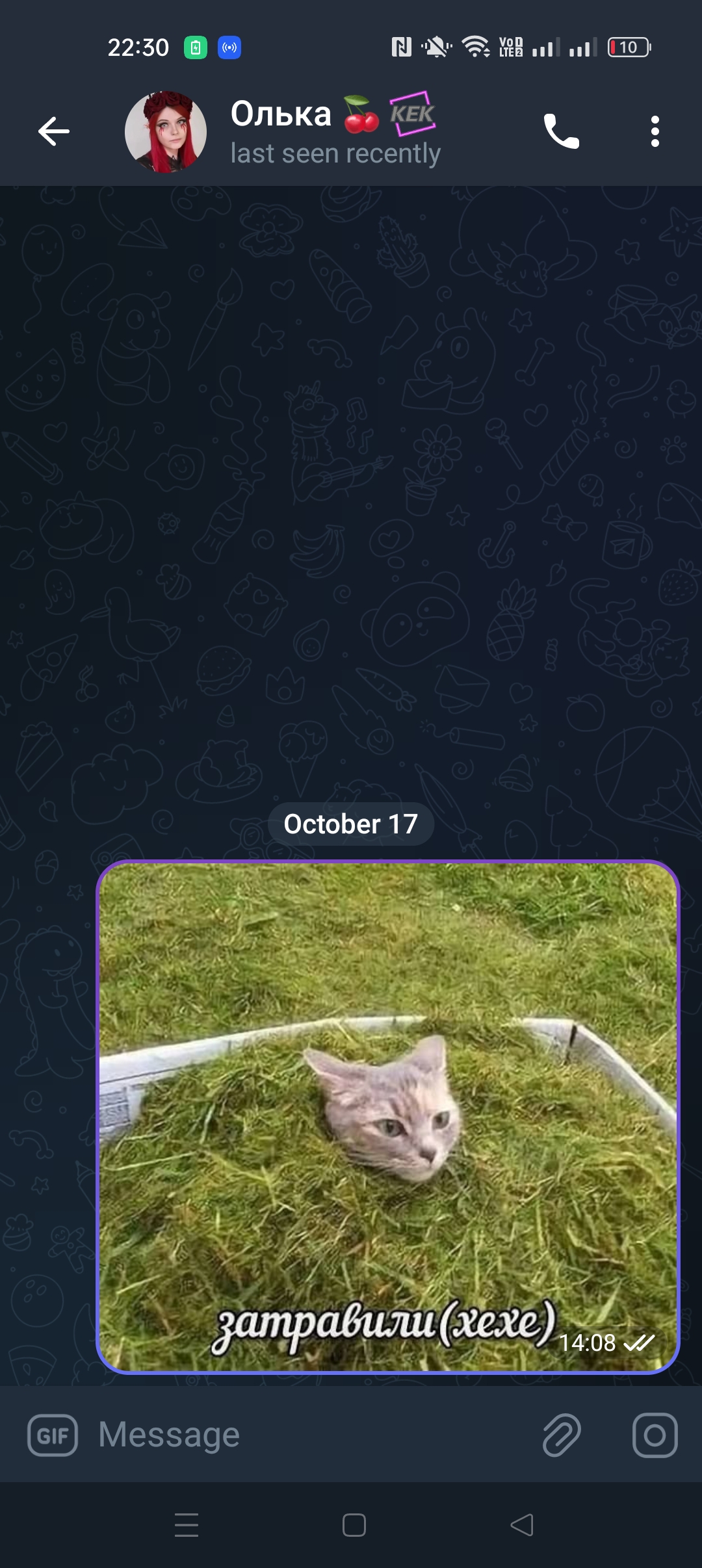 >>25408476 у нее жизнь ласт 3 дня состояла из поспать и пойти в тсик к мевсу, она уже мечтает с ним время провести, хотя так и получилось, постримила поспала и к мевсу)