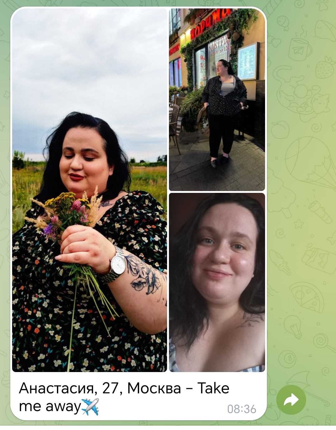 Девушка оказалось нестандартной, работает в магазине настольных игр, своей конуры не имеет, иногда хостел снимает, но бывает и на вокзале ночует.. Красит там же миньки по вархамеру за деньги. При этом москвичка! Но связь с родственниками утрачена. Выпивает немного я так понял. Есть татухи, не дюймовочка.
