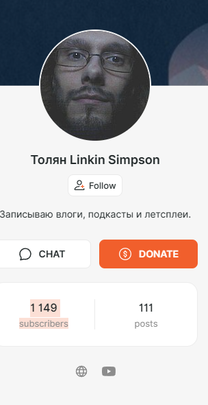 У чмоли сралкина 1 149 subscribers, минимальный 1 уровень подписки на его бусти стоит $6.4 per month. 1149 x 6.4 = $7353,6 = 588288 рублей. И после этого вы считаете его бомжом и зашкафным червяком? Да этот хуисос каждый день нюхает кокс с жоп топовых моделей на своей километровой яхте. Стоп донат чмолику!