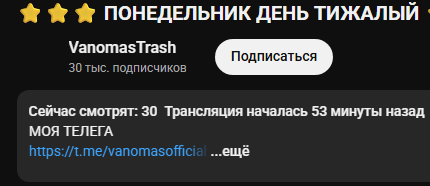 >>25431779 статьи на сайтах про всех пишут, ты бы еще киберспорт в пример привел. >Его популярности есть подтверждения и в цифрах непосредственно на твиче/кике/ютубе Это на кике, где 20к онлайна, но подписчиков как было 50к так и осталось?
