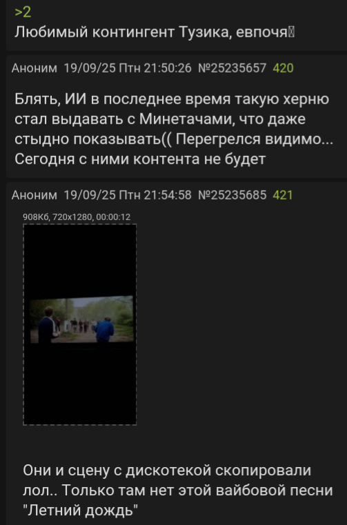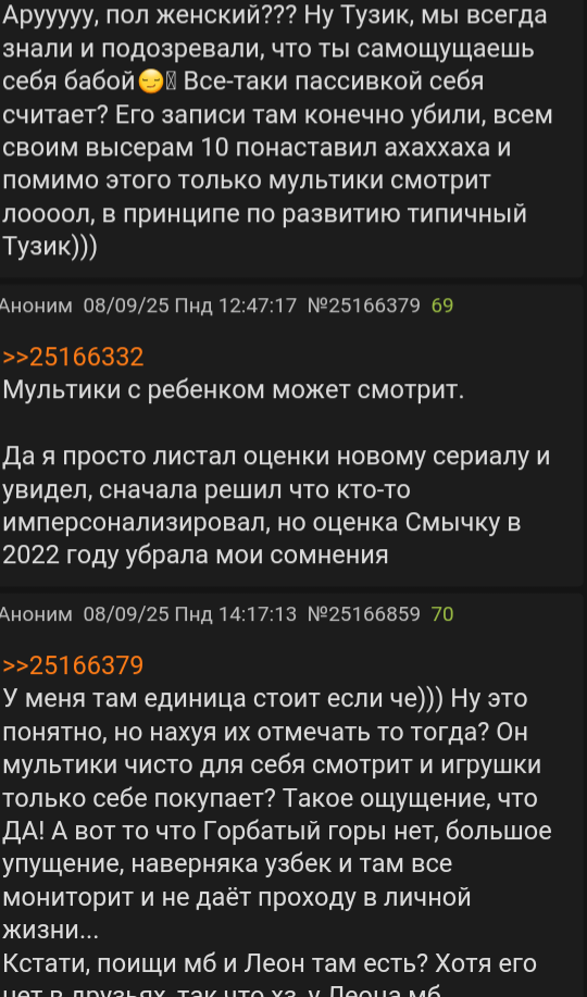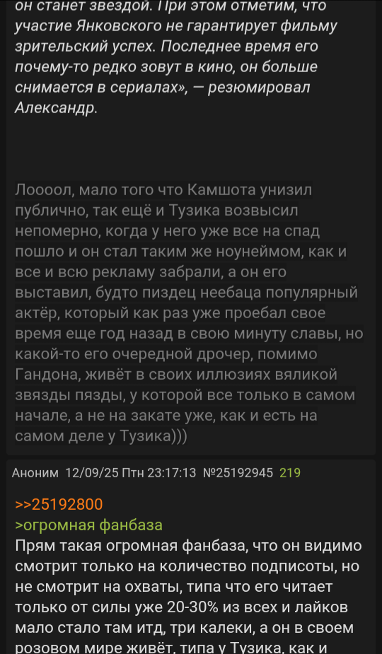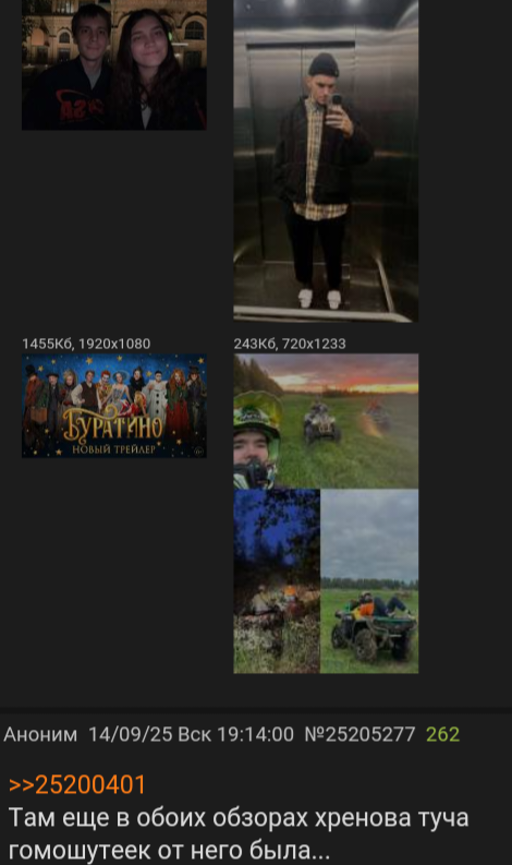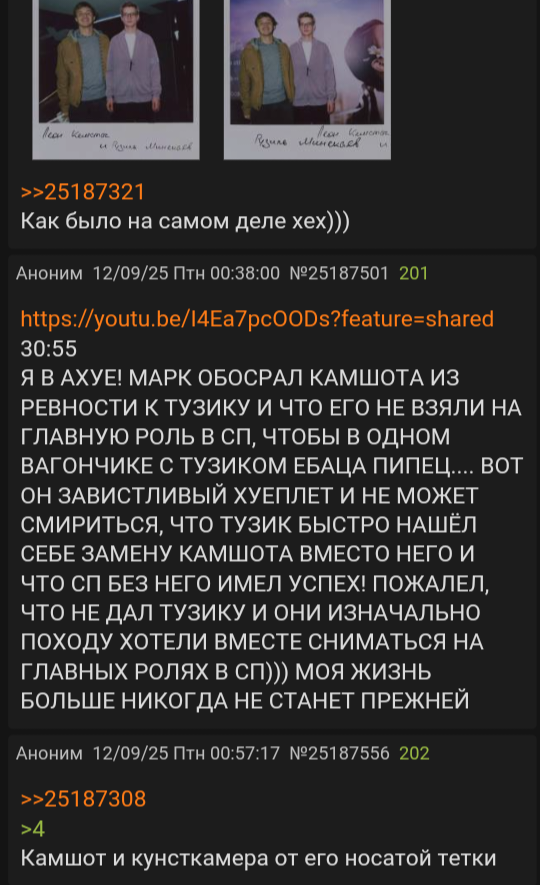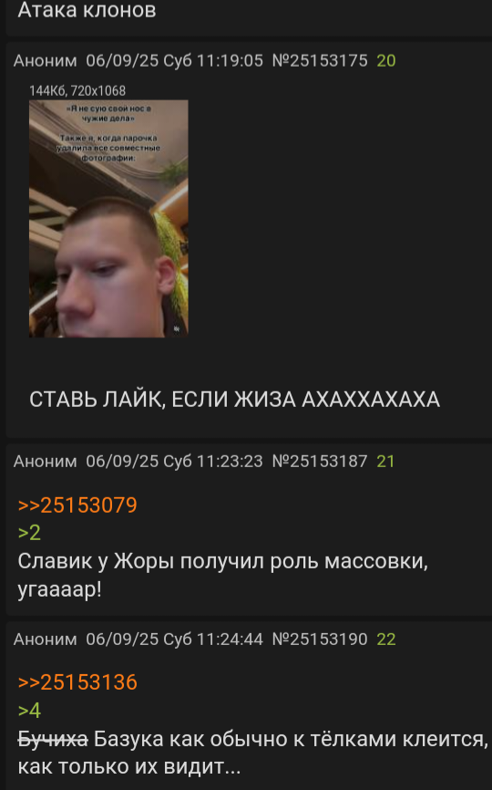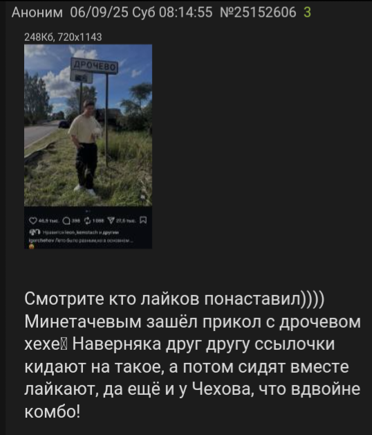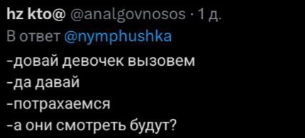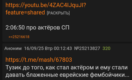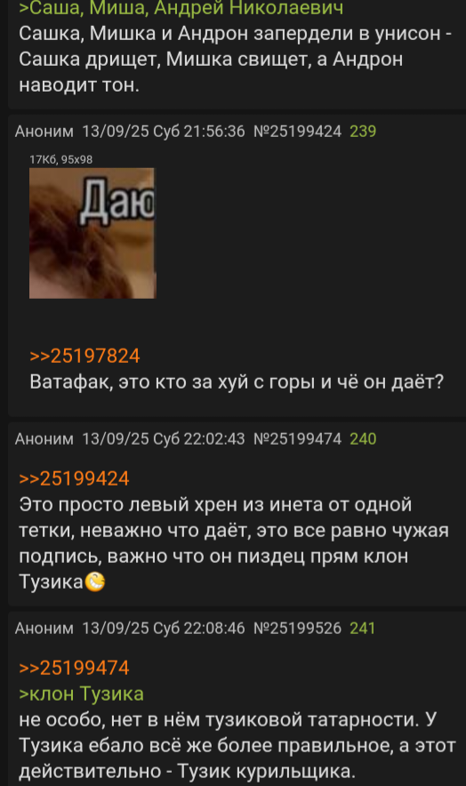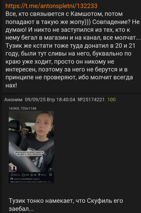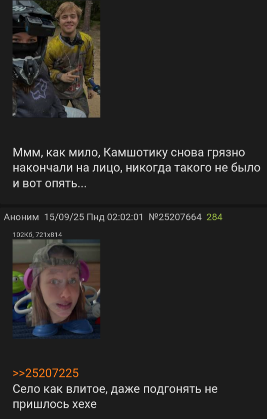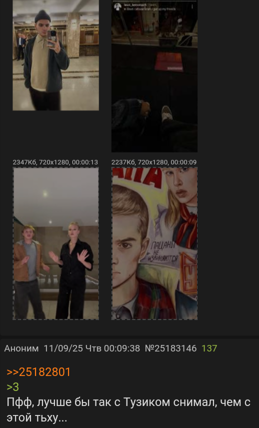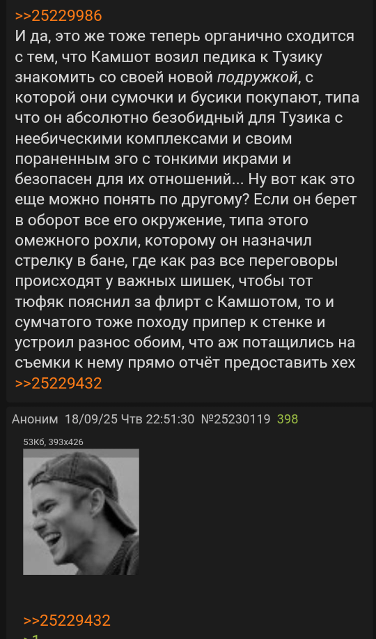 Аноним 27/09/25 Суб 19:21:19 № 25286948 157 >>25286420 Это хуйло тряслось из-за Тузика и не хотело публиковать про него зато про еблю Кала с водилой и вот это выложил (Это такой же наброс из треда как и про водилу) Наверное реально думал что это Копейкин с Янковским.
