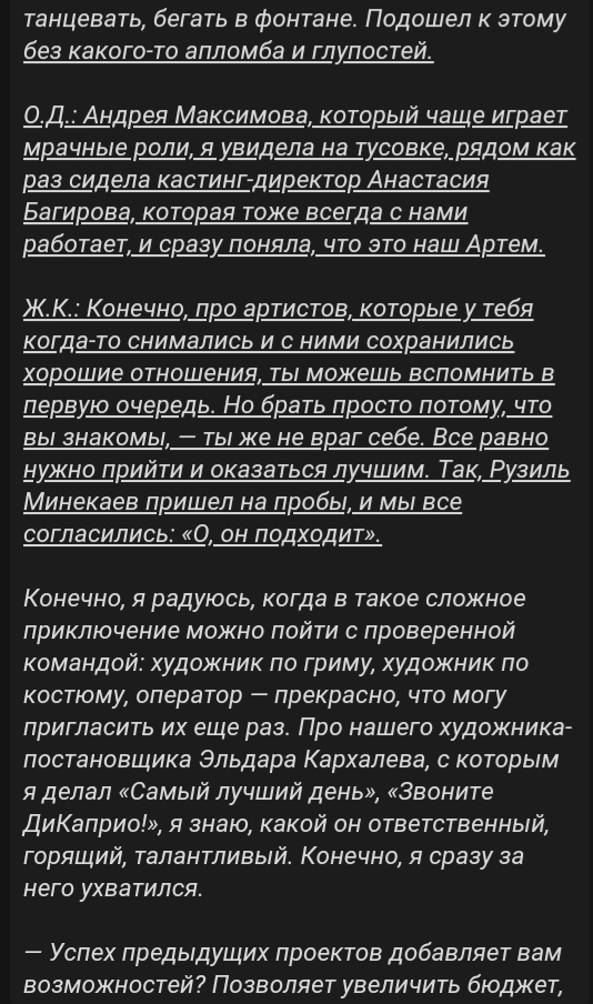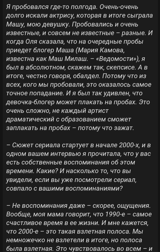>>25462044 Ну там так писали, ибо эти лохозавры никого больше не знают, для них Минетачи ваще пустое место, а Кал с Янкой типа известны и может кому-то даже заходило для шипперства, поэтому и подумали на них, хотя там написано главных актеров, но непроходимые тупарезки даже не доперли, что Кал нихуя не главный, а чуть не в массовке изначально роль, просто в инете так зафорсили, якобы он важнее Адика с Минетачами, хотя он не скрывал что снимался всего дня три что ли за весь период блять лол или меньше недели кароч