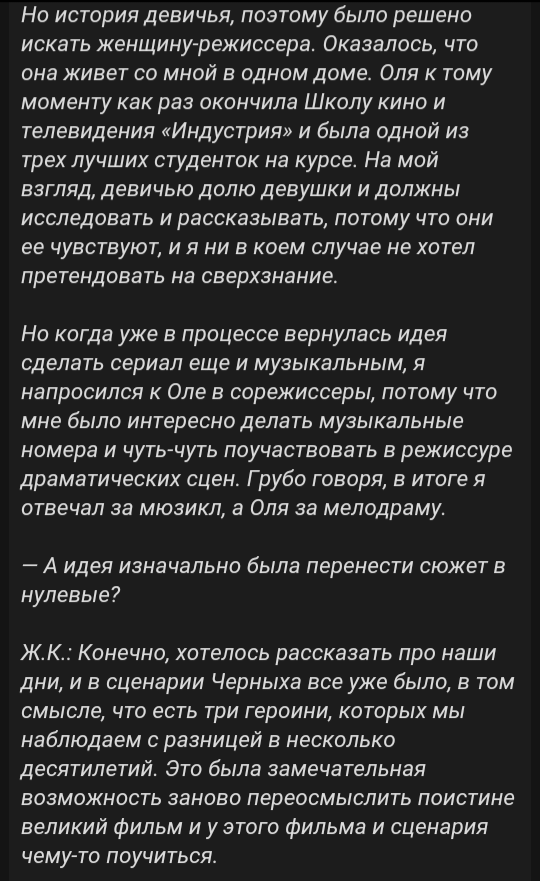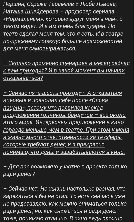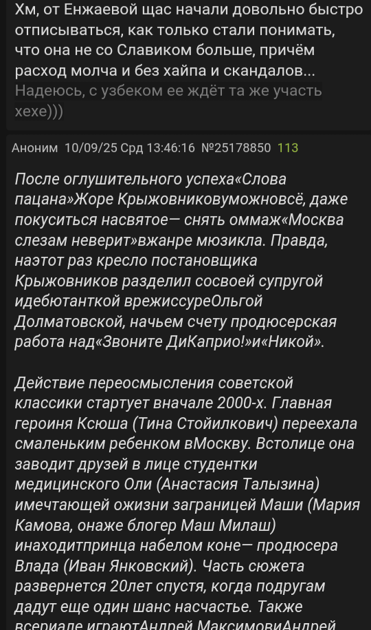 Аноним 24/09/25 Срд 20:27:58 № 25267286 44 >>25267132 >Ну я смотрела серик. Главные там по сути двое: татарчонок и слащавый блондинчик со сценическим прозвищем "Пальто", затем сценический брат татарчонка Янковский, антагонист Кологривый, ну и далее всякая второстепенная шушера типа этого Копейкина и Пересильд.