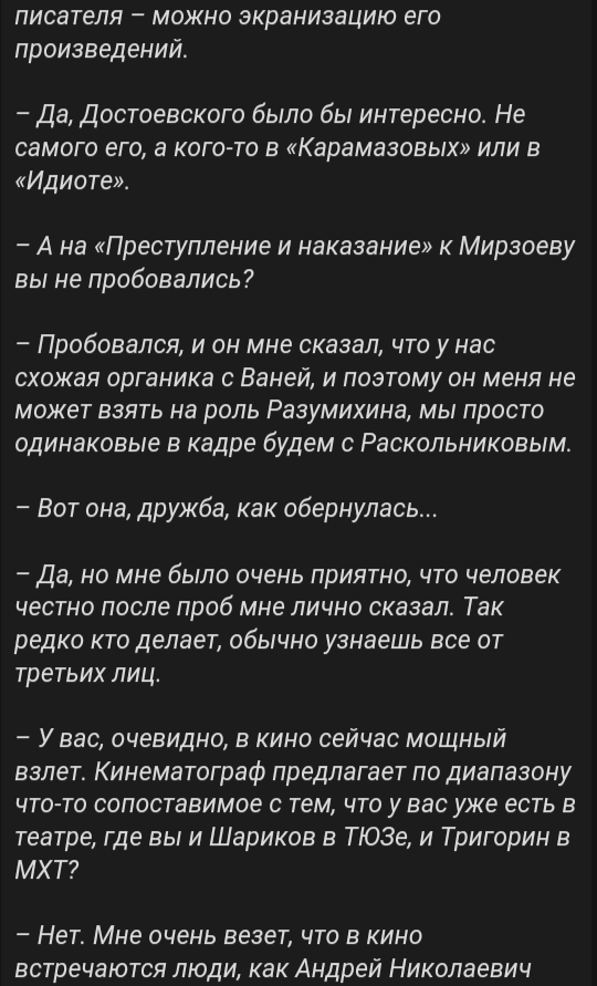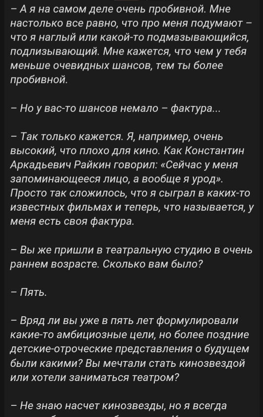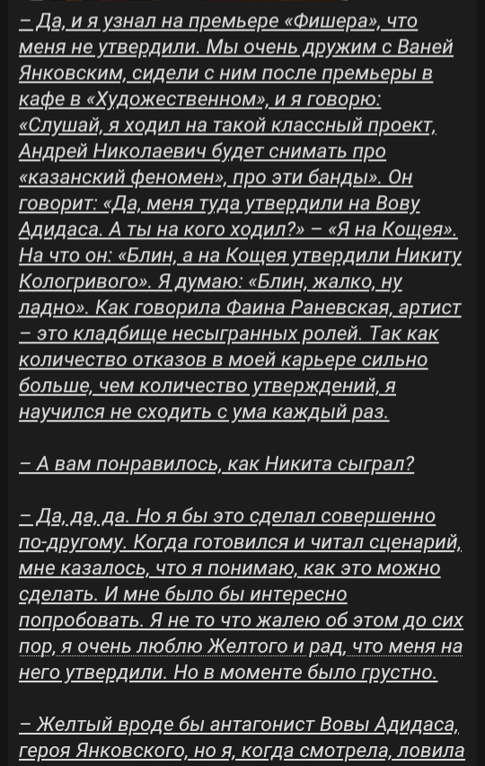 >>25461311 >>25461223 Про Кала звучит как опять фантазия Иуды,про водилу и т.д. Собственно как тут и писали >>25451583 Что Антонина пойдет наваливать шизу про других актеров ебанину Про Кала не верю, может он давал в жопу пару раз за роли но чтобы там он реально фапал на Янку не верю ибо там чисто зависть что Янковский получает роли просто