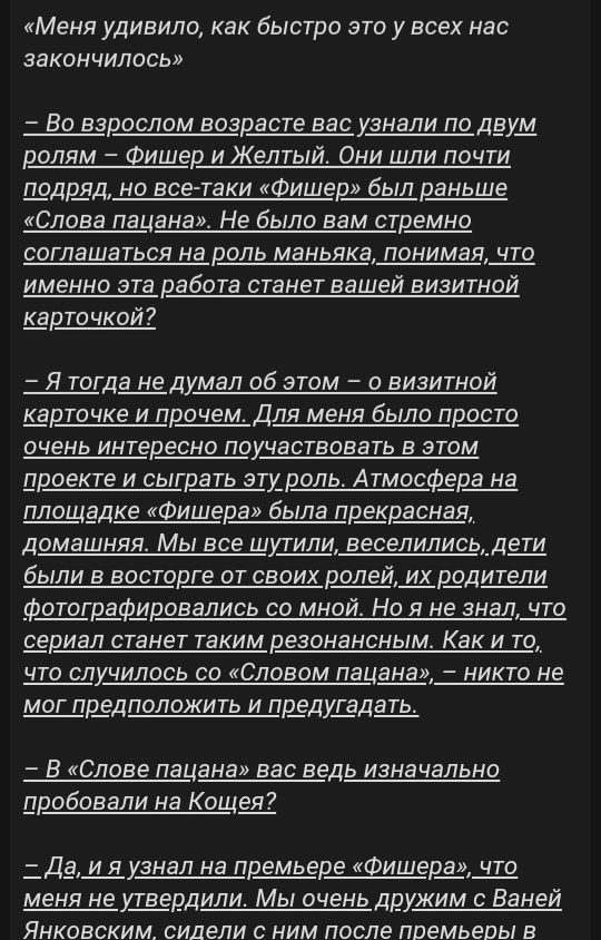 Ждём ещё новых видосов Антона Асс про великую любовь Янковского и Фишера и как там Янка отшил Кала и Кал обиделся и за это начал про него плохо говорить (Лол он тогда всех хуесосил и Козловского и Бортич и тех с кем ещё в СП снимался.Это обыкновенная зависть всратика что не вышел еблом и его не берут на главные роли) и как Кал собирался сливать про Максимова и Янку (Как блядь?Ему бы никто не поверил да ещё и за клевету привлекли бы,он ёбнутый но не настолько) может там ещё будет про Копейкина,Зулю и т.д.Антон Асс ещё долго будет возиться с этой темой прикрытия для Тузика.