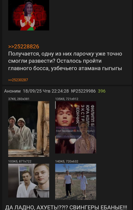 Смотрю вписку)) Зуля делал порношаржи на училок... Кто-то ещё сомневается, что он и есть иуда??? Там его в комментах все хвалят, пропуская мимо ушей все его зашквары, типа какой неебаца начитанный после Макана, как сложно удивить глубинариев простым умением пиздеть, там еще эта история про друга, с которым он поступал и друг куколд его простил! А у Славы на полочке фотки с Леоном стоят, пиздецнах ваще без палева😳