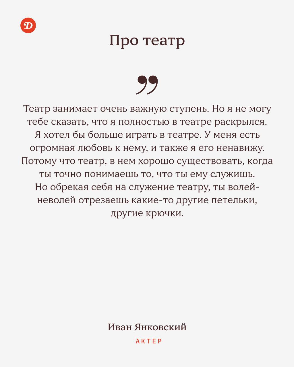 Поговорили о семье и династийности, о роли деда — Олега Янковского, чье имя остается внутренним эталоном, о театре как пространстве правды и испытания, о взрослении, страхах, честности в актерской работе, а также о светской жизни, ее соблазнах и границах, которые помогают оставаться собой.