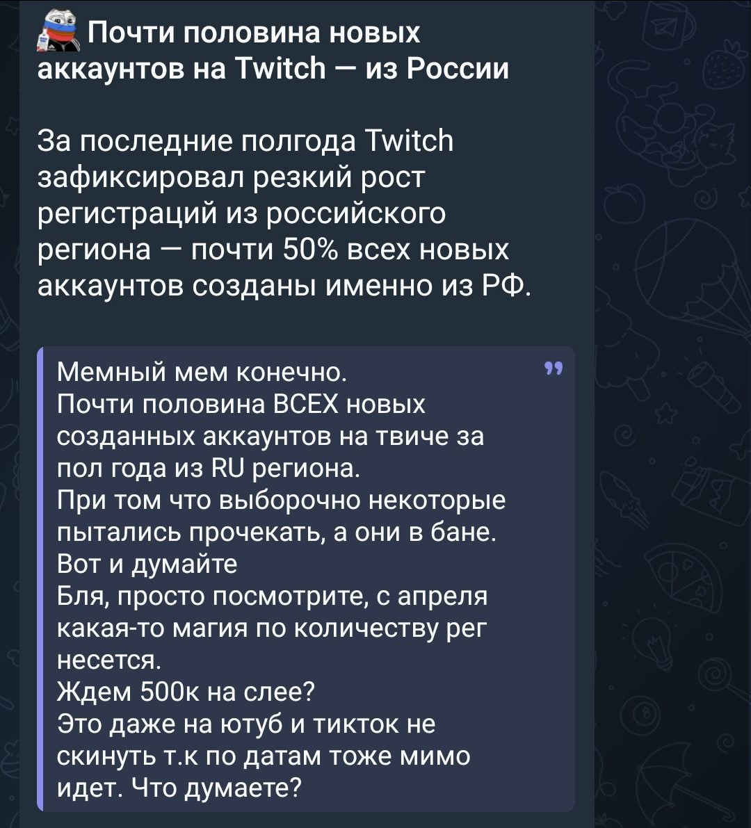 >>25458446 Бтв я тоже от него отписалсяхотя я в принципе список стримеров сократил сильно. Отписался просто потому что он агрессивный пиздец, причем не смешной как жопеши мэдичи, а просто токсик, да и стоит признаться - нудный. Думаю, что резкое падение онлайна связана с девочками которых он против себя настроил.