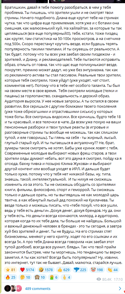 Серьезно? Вы вообще в курсе, что до появления ваших стримерш существовали, блять, КИНОЗВЕЗДЫ? Певцы? Рок-музыканты? Этим людям фанатки трусы на сцену кидали, в отелях караулили, на части рвали. И как-то, сука, выжили. Без многочасовых стримов с нытьем про «травмирующий опыт».