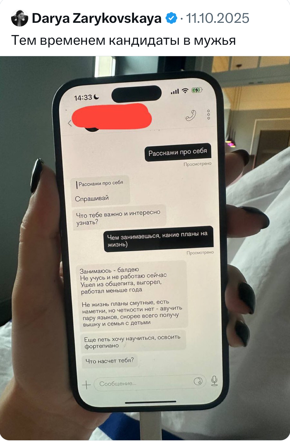 Похоже что лукмаксинг потихоньку начинает работать. Стал замечать что зумерши в транспорте на мне иногда задерживают взгляд а когда общаюсь с обслуживающим персоналом они часто нервно себя ведут, забывают что-то и тд. Думаю что еще немного полукмаксится и можно в дай винчике регаться.