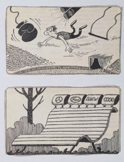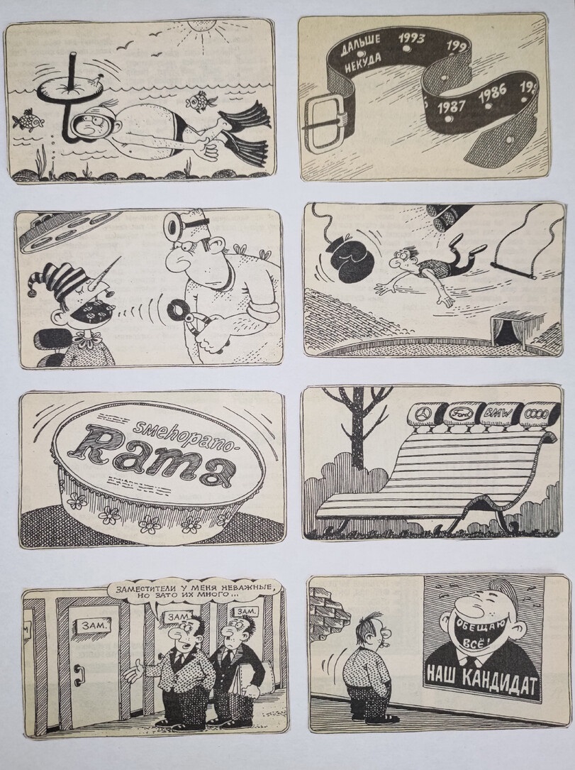 >>25484637 Да, узнаваемый стиль, но я отчётливо запомнил только Алексея Меринова, постоянно выискивал в газетах карикатуры с чёрными человечками, они были самые смешные.