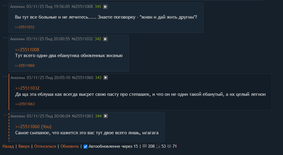 >>25518544 Всеми таджикскими богами молю - НЕ ПЕРЕКАТЫВАЙТЕ. Я все понял, парни. Я исправлюсь, я понял что был гнилью и нужно меняться. Мне больше не нужен тред на дваче. Вы выиграли, я стану добряком. Никаких пермачей, максимум тайм аут на 10 минут. Полный мирняк, больше не нужно перекатов.