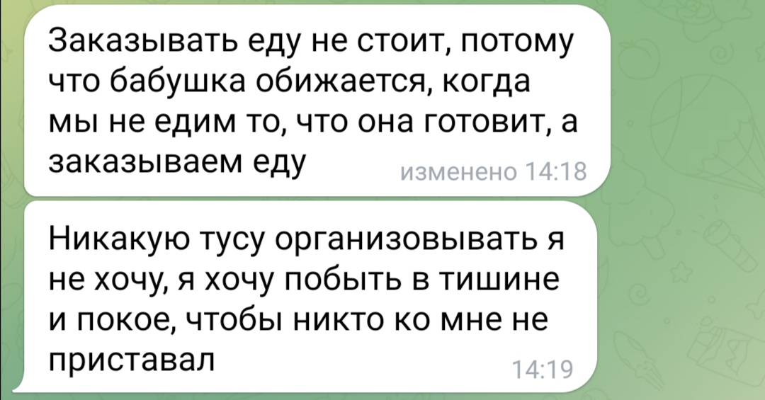 >>25494957 Ну и отъебись от брата, скажи просто что если он передумает или появится желание тусануть сейчас или когда-нибудь ещё, то ты всегда для него доступен и пусть связывается в любое время дня и ночи.