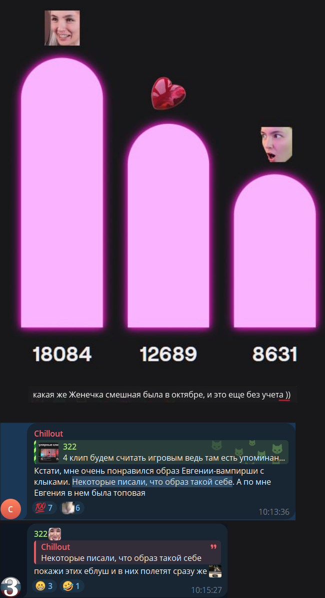 Пока из фактов сближения - пара вылазок на природу с компанией, совместная поездка к тарелке, вчерашний внезапный рейд, ну и бурная переписка, где Женя даже видела косплей Алины еще до стрима А, ну и Япония видимо тоже под влиянием Алины стала стова рукопожатной, тут соглы