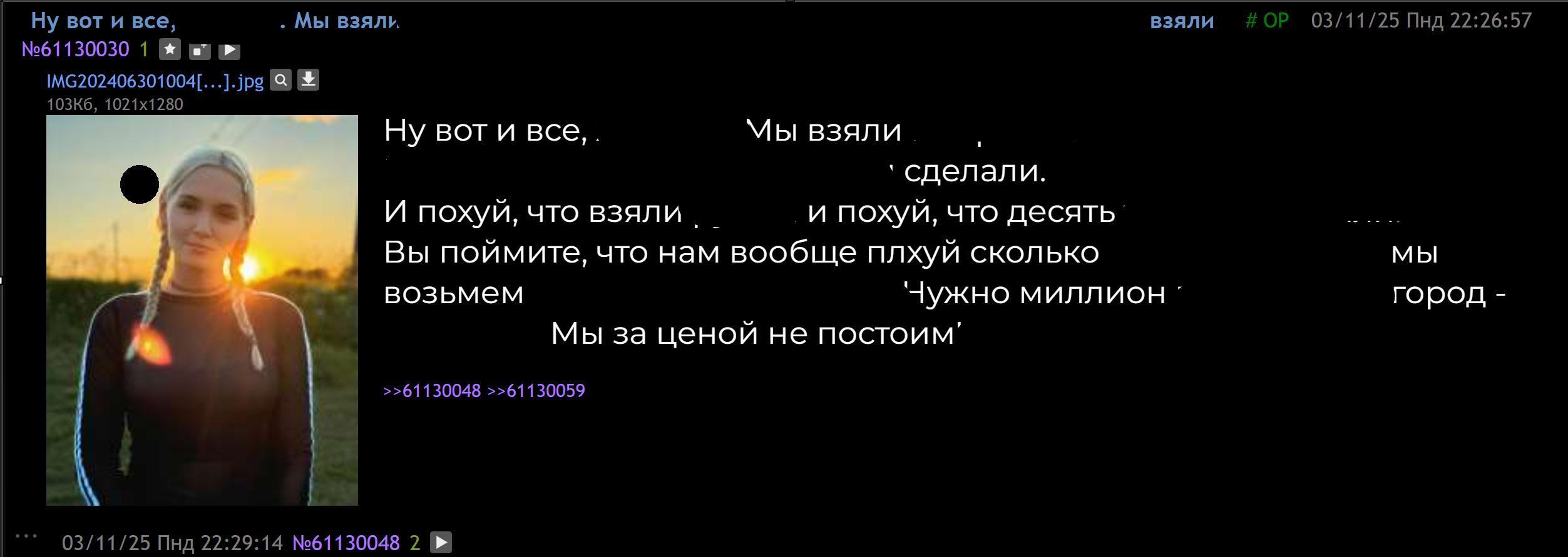 >>25511106 Ты правда думаешь, что Дениска кромсает себя ради того, чтобы на анонимной борде в треде пользователи глумились над ним ? Мне кажется, что это плохая идея. Передай главпидору в приватке, что потраченные миллионы и убитое здоровье того не стоят.