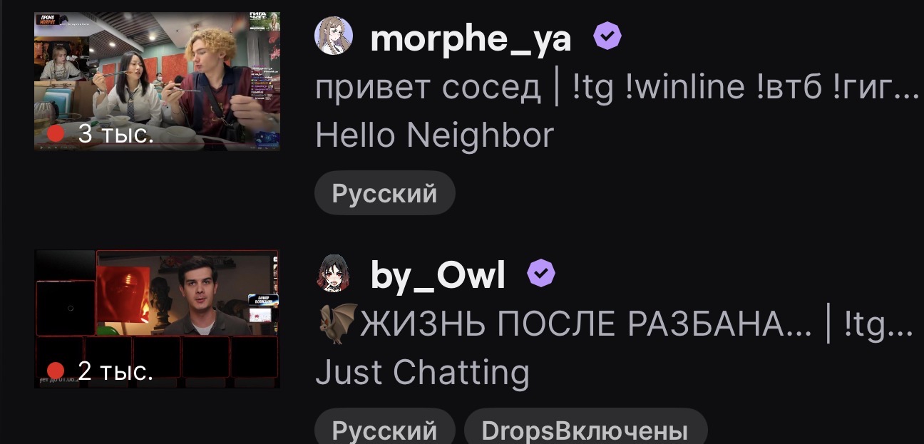 >>25509590 Нет,просто заебали долбаёбы которые на онлайн всех последнюю неделю дрочат.У ВСЕХ стримерш на нарезке онлайн поднимается также и тут сначала у Юли нарезка онлайн больше,потом у Морфи сейчас Юлька свою игру запустила и снова у неё больше а ебанаты сидят хуйнёй страдают