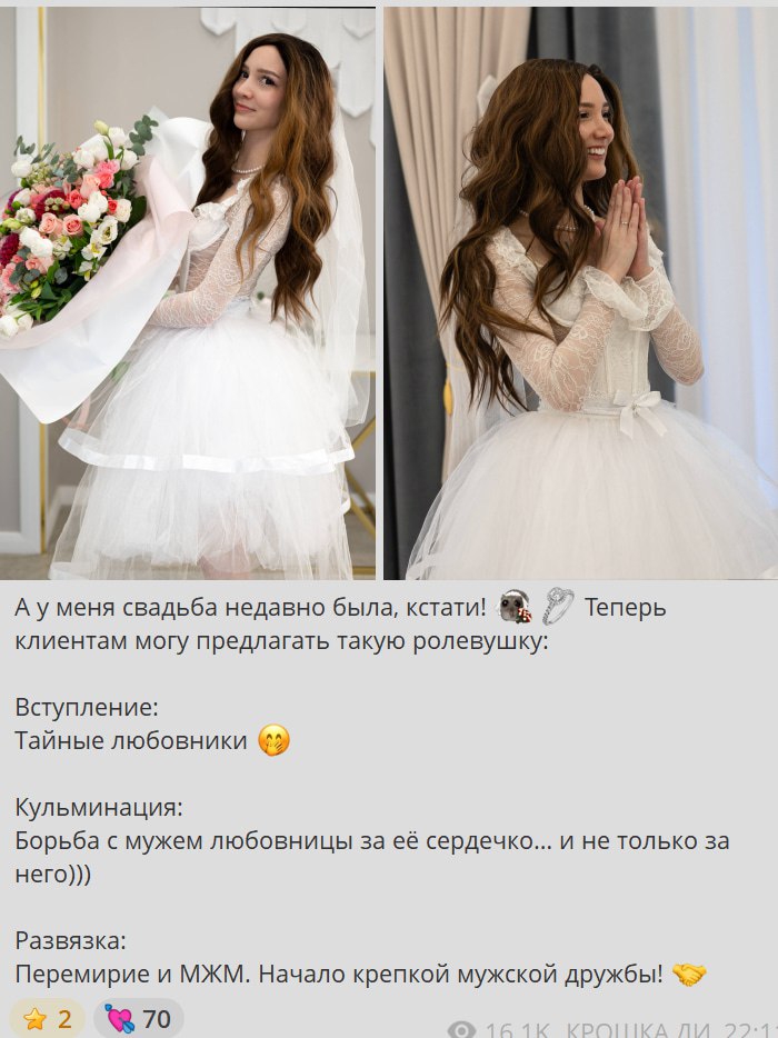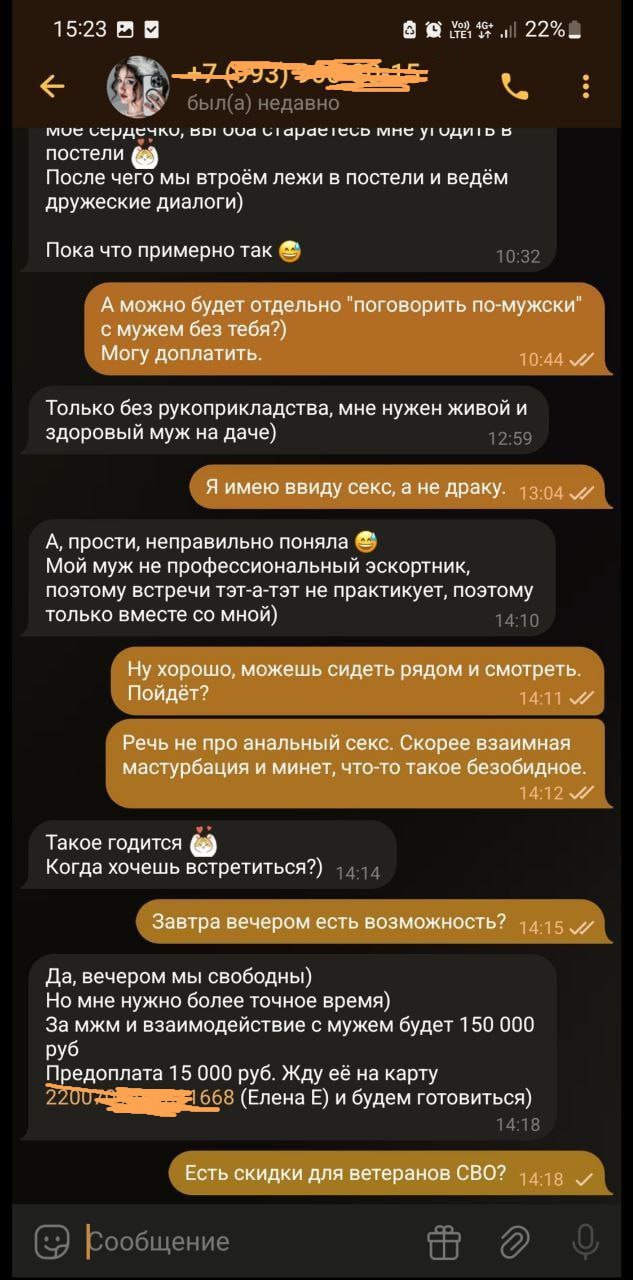 >>25511522 >>25512804 >>25512877 Это не для нас с вами развлечение. 200к за час заплатят кто надо! Может быть залётный квнщик, может кабан. Тем более она так открыто рекламирует свои услуги в такое время - значит крыша есть.