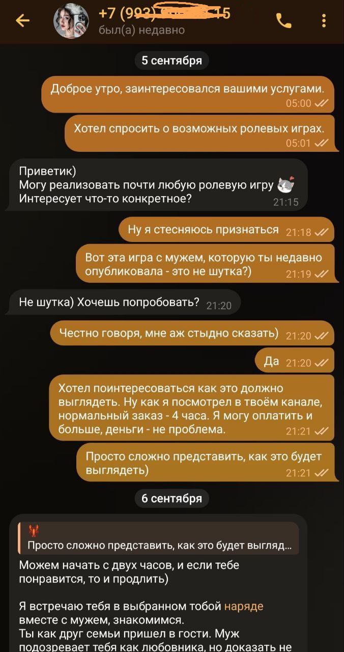>>25511522 Это реально ты переписку вёл с ней или спизжено откуда то? А так то норм идея. Всё равно проституцией занимается - муж изначально наверное разрешил и хотел быть куколдом. А тут ещё и денег сверху заработают.