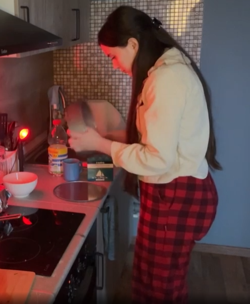 Сейчас сходил в магазин и на 50 рублей купил печенек, чая, макарошек немного, одну луковицу, чуть чуть томантной пасты, кубик маги, будут ужин готовить