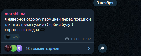 Очень жду стримы из Сербии и если честно хуй знает что больше жду, стрим Вадима и Арины или Вадима и Наташи,есть шанс что первое будет говно тк Морфилина будет опять стесняться и бояться стримить с ним 1 на 1 и все стримы будут в компании из 20-ти челов,что стримы с Генсухой скорее всего кринж будет и Наташа будет лицо воротить от него