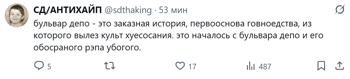 А и объясните прикол - я никогда не сидел в ваших тредах в ХХ, вы че тут обсуждаете? Этот слава КПСС даже никогда популярным не был, вы вспомните времена янграши, кем тогда были фараон и депо, кем чуть опосля стал гон фладд. У бесталанного колхозника из Владивостока или Хабаровска откуда там это чмо , даже 1/50 их популярности не было никогда. Сейчас я уже не слежу внимательно за ру репом и не слушаю, НО. Даже блять сраный ВОРМГЕНГЕР который 7-8 лет назад в Вешняках хуйней страдал и имел я хз 10к прослушиваний на стримингах, даже блять не был на ведущий ролях в сокол крю, щас собрал вокруг себя крю с миллионниками. А вы тут сидите обсуждаете нижайший интернет.