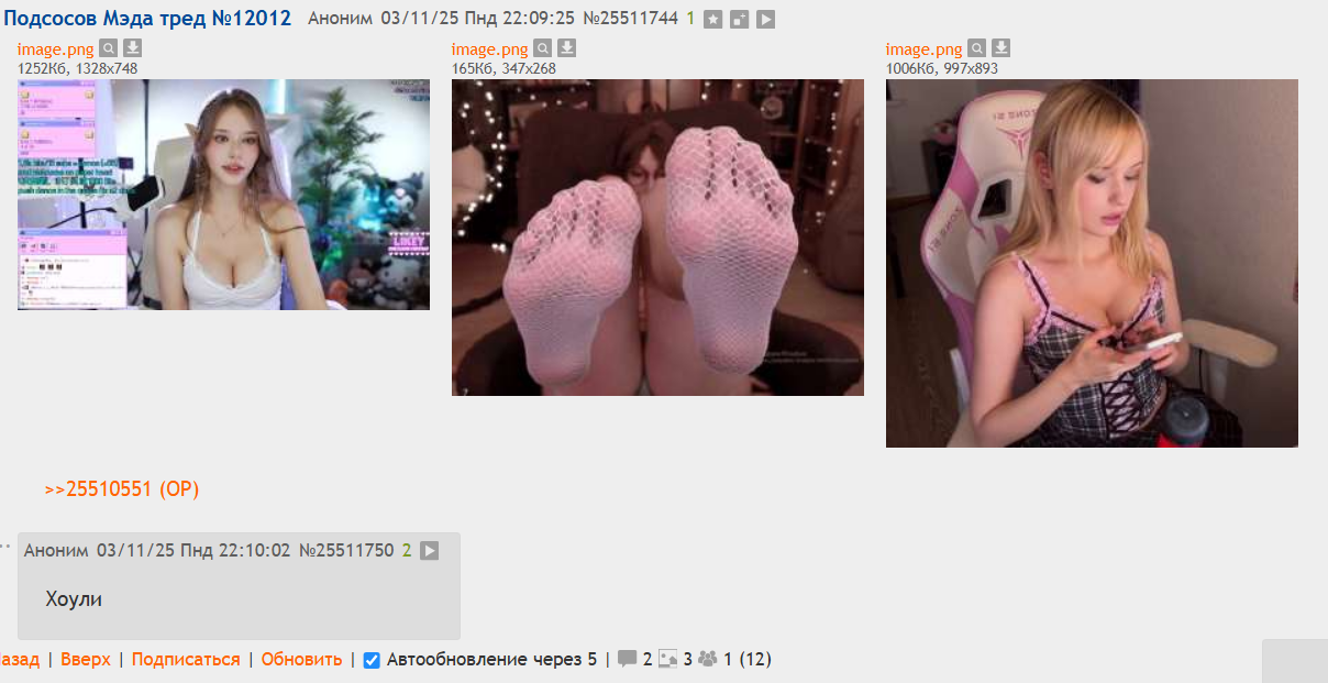 Самый странный продажнич в моей жизни: мне заплатили 25 тысяч рублей, что бы я зафорсил в подсос-треде какого-то вислоухого гнома, похожего на Гамаза с запоя. Причем платили рекламные манагеры одного из стримеров, что меня очень удивило. То есть кто-то прям вкладывает бабки в ее раскрутку. Странная фигня. Теперь стыдно, конечно, что взял деньги. Самая красивая стримерша совсем другая девочка, но я не буду говорить кто.