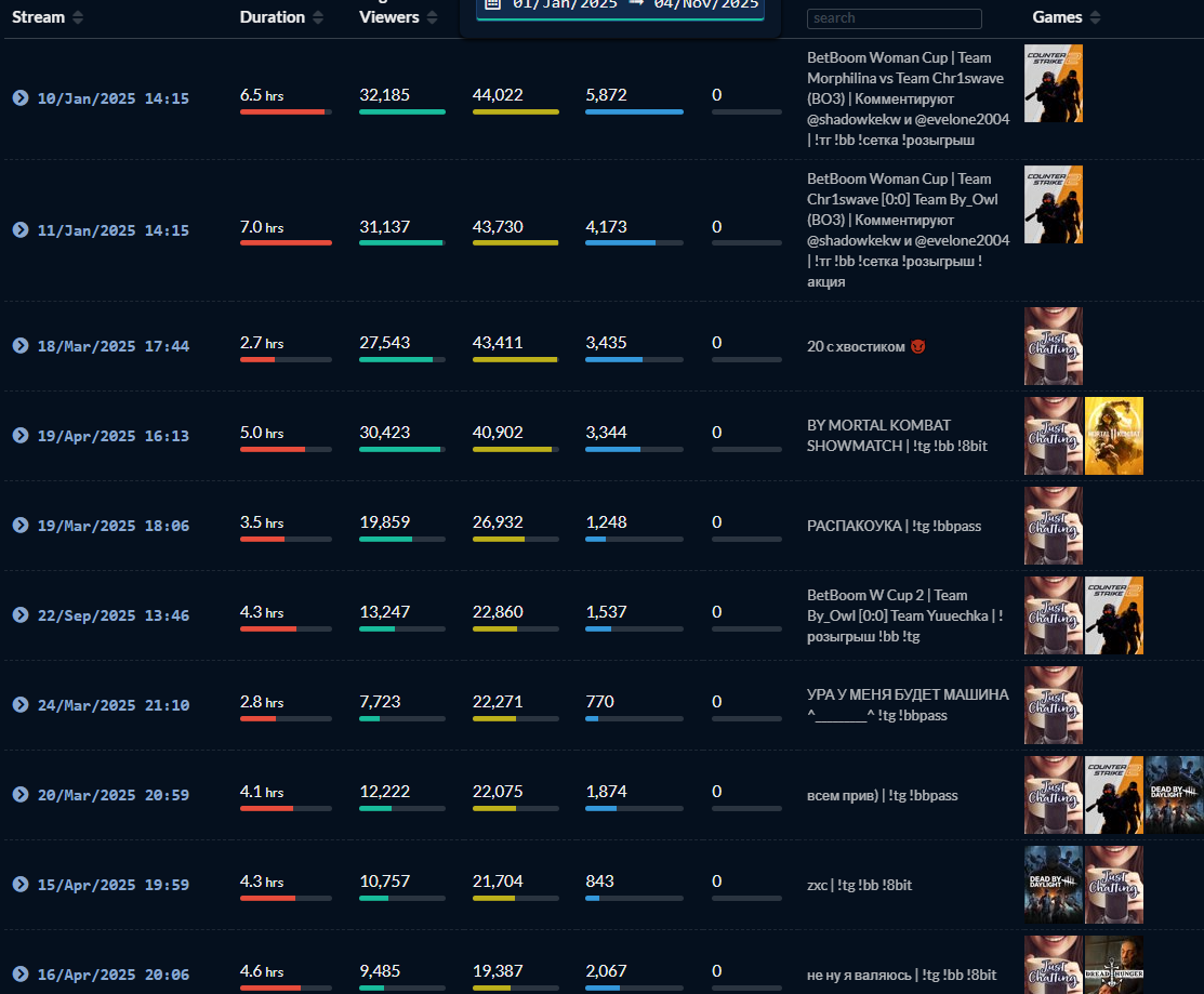 >>25517036 За что добавлять Генсуху? Много стримила ? нет, Много больших онлайнов было? Нет. Морфилина и стримила больше и больше было пачек на стримах и тд