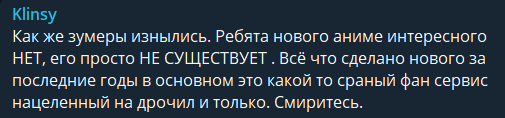 >>25549699 Очередное новое поколение анимешников, которое за пару лет пересмотрело всю копившуюся десятилетиями годноту и плачеца, что тайтлы уровня атаки титанов не выходят каждый год